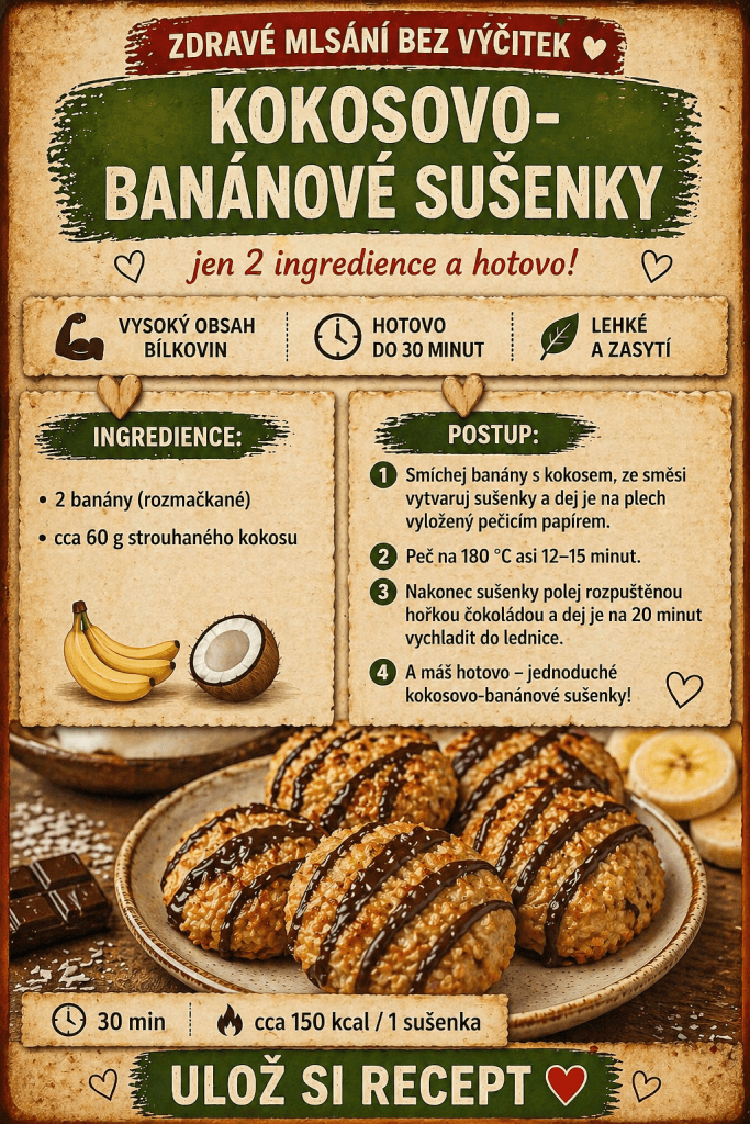 Tyhle kokosovo-banánové sušenky jsou přesně ono. Stačí ti jen dva základní ingredience a během chvilky máš sladkou dobrotu bez zbytečného cukru.